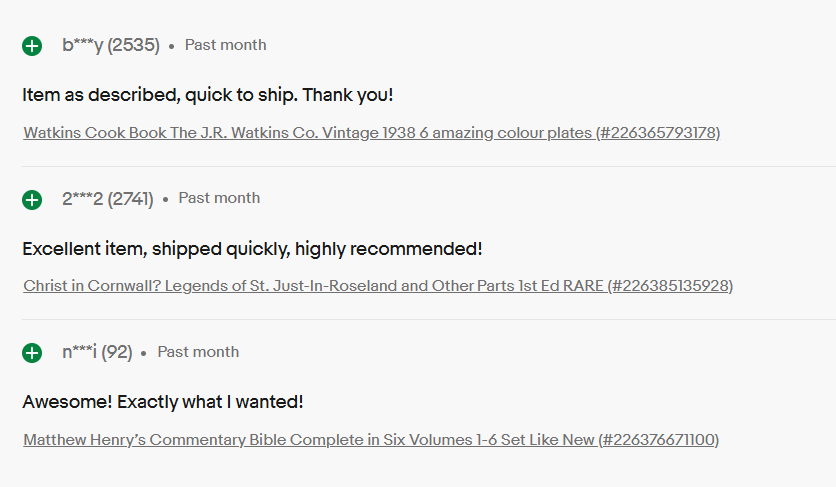 Most Recent Reviews Received from our eBay Reviewers